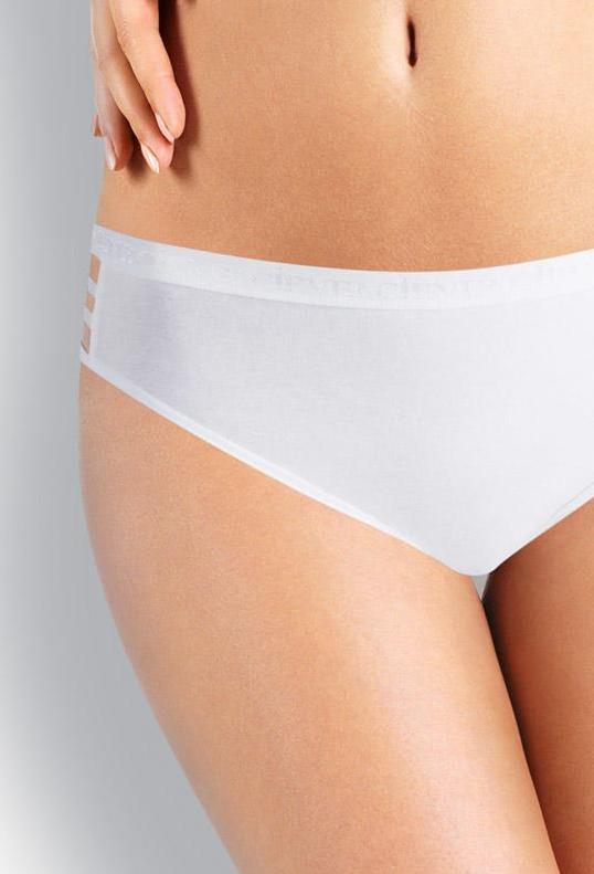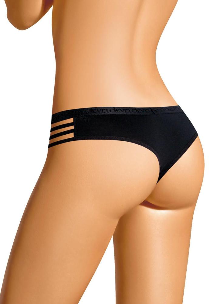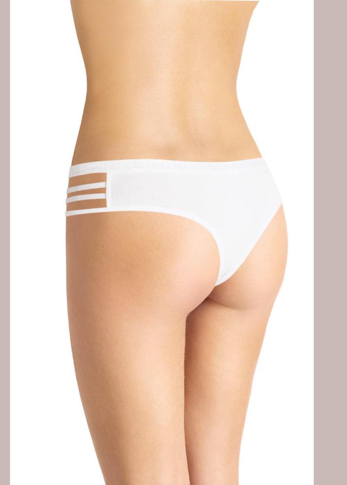 Трусы бразилиана из хлопкового полотна с эластаном. Сбоку вставки из узкой эластичной тесьмой. По ножке край окантован резинкой, а по талии жаккардовая резинка.