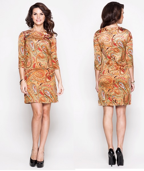 - Яркое платье прямого кроя в принт "Пейсли".<br />