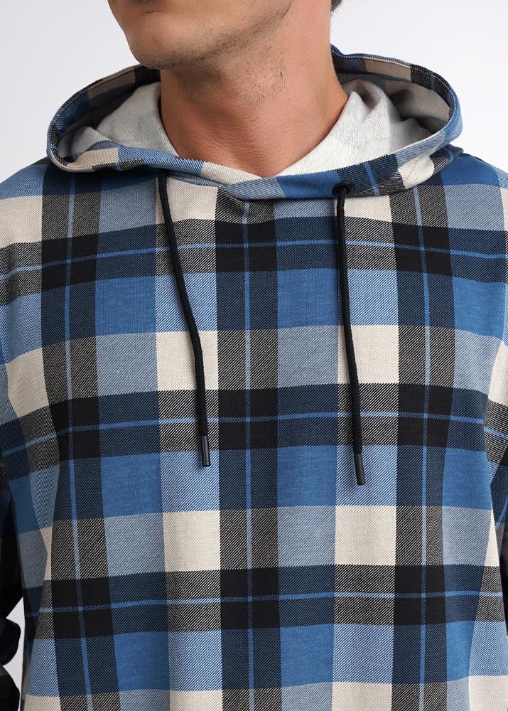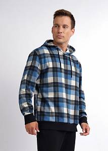 Молодежное худи из футера на капюшоне и регулируемым шнуром, с удобным спущенным рукавом. Модель интересна благодаря гармоничной клетке, а так же контрастной авторской фурнитуре. Составит отличный комплект с брюками в повседневном образе. <br />