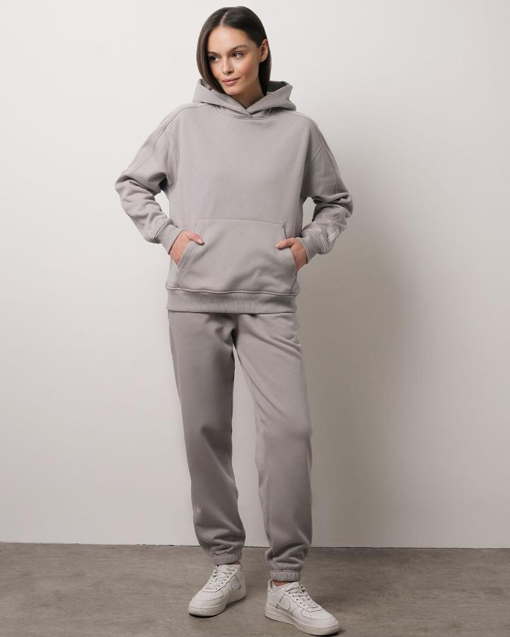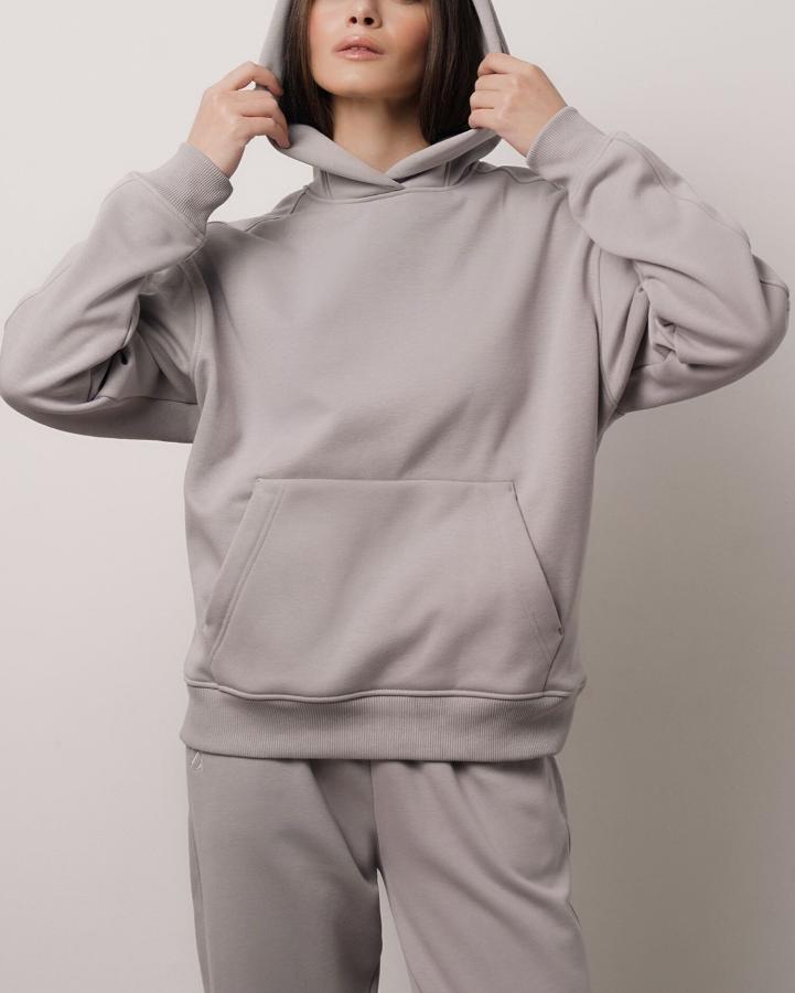 Худи свободного кроя с капюшоном, спущенное плечо, карман кенгуру.